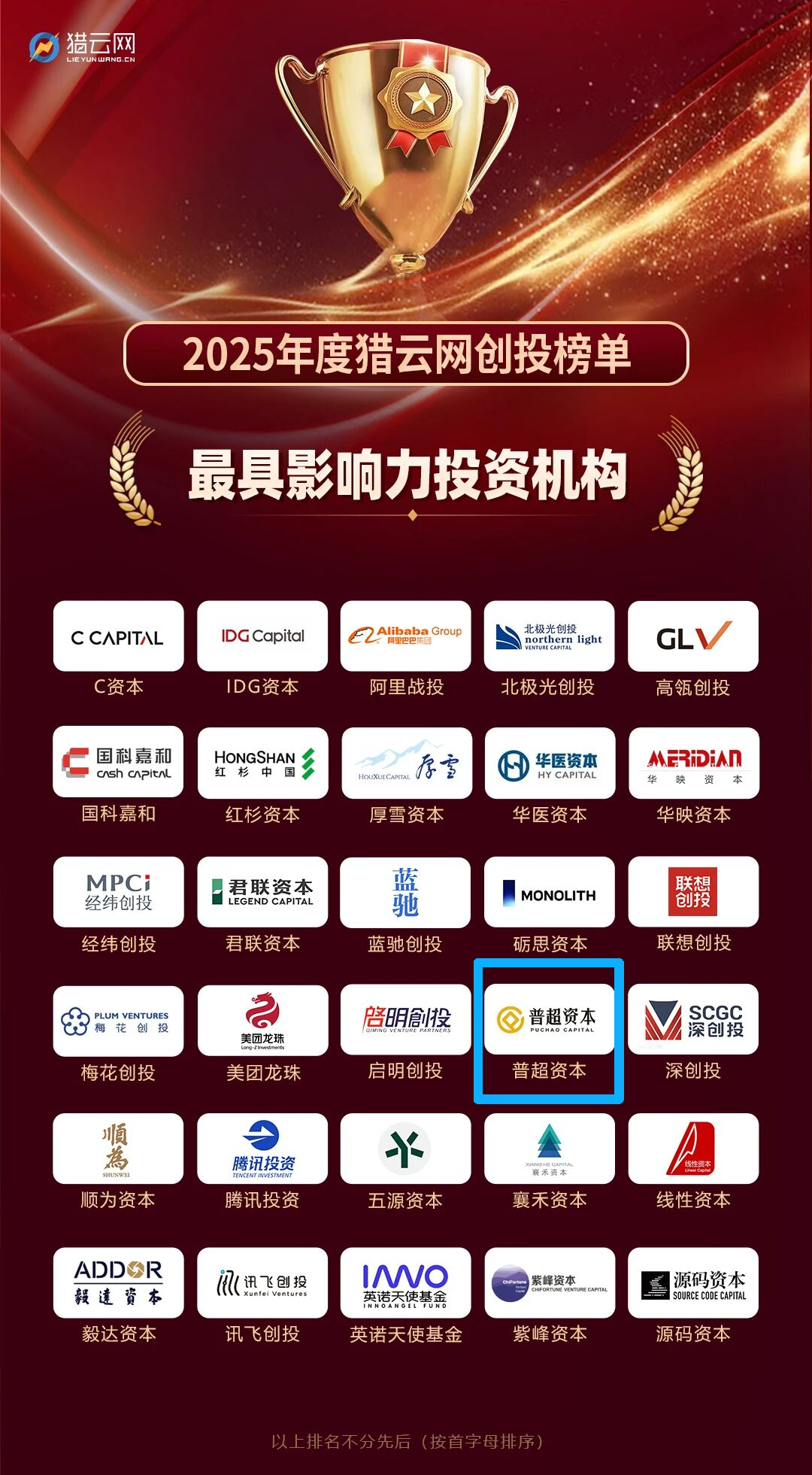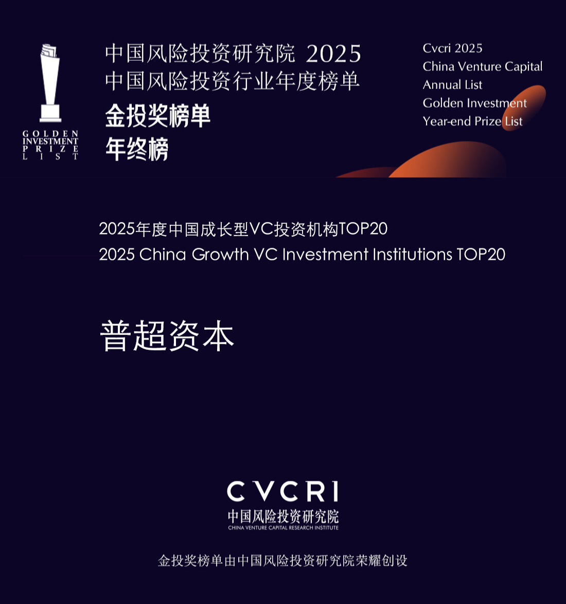 普超资本荣获中国风险投资研究院「2025年度中国成长型VC投资机构TOP20」
