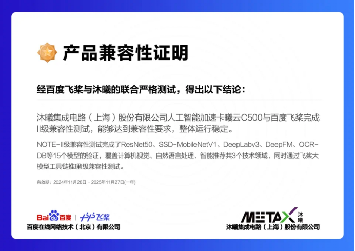 沐曦与百度飞桨完成Ⅱ级兼容性测试