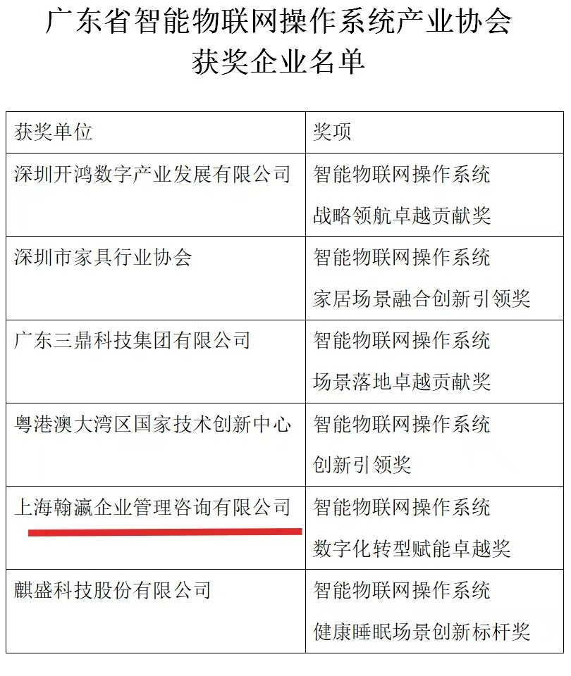 在本次活动中,普超资本生态伙伴——上海翰瀛企业管理咨询有限公司荣获“智能物联网操作系统数字化转型赋能卓越奖”。