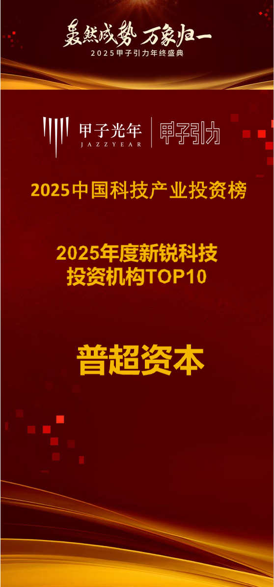 普超资本凭借前瞻性的科技洞察、深耕行业的专业团队,以及在硬科技领域的长期系统布局,成功入选“2025年度新锐科技投资机构TOP10”。