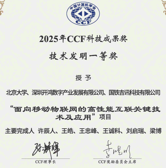 深开鸿荣获2025年度中国计算机学会“技术发明一等奖”