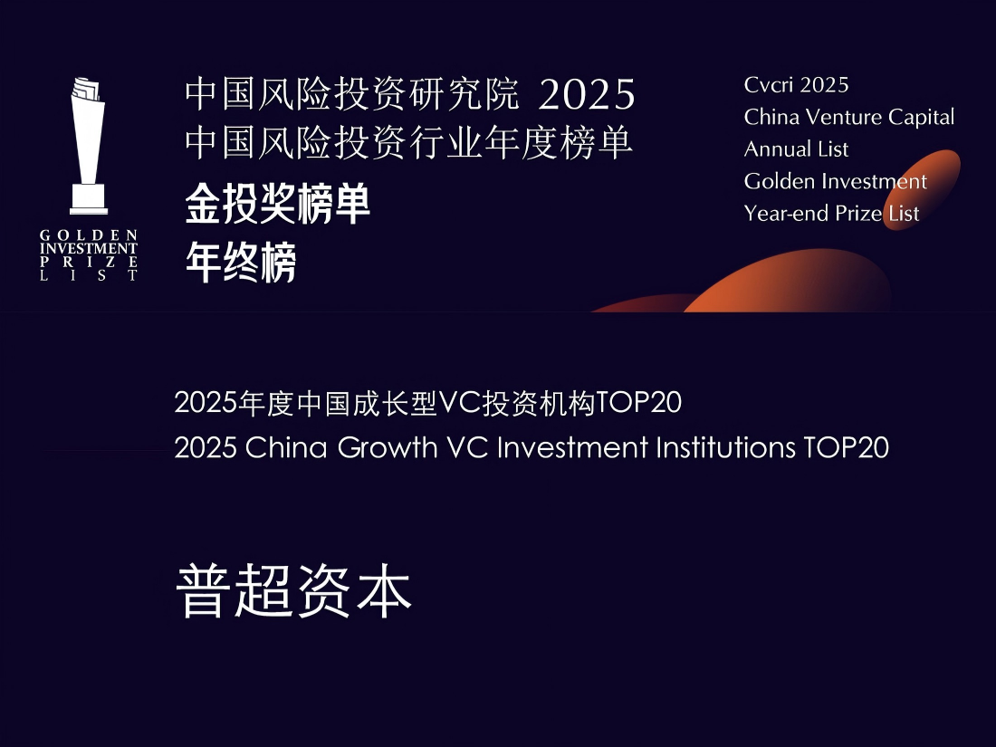 普超资本荣获中国风险投资研究院「2025年度中国成长型VC投资机构TOP20」